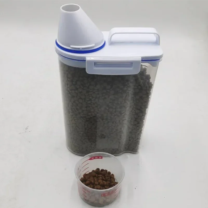 November 4, 20251.5kg/2kg Dog Cat Food Pail Plastic Storage Tank with Measuring Cup Container Moisture-proof Sealed Jar Pet Supplies Accessories