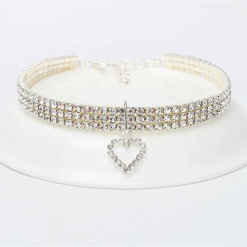 November 4, 2025New Cat Dog Collar Three Row Elastic Rhinestone Pet Collars Love Decoration Necklace Puppy Kitten Ornament Pets Supplies